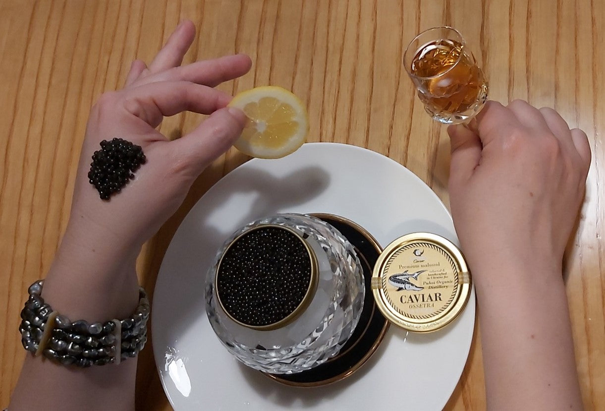 Puhoi Organic Distillery collaborates with the strategic partner New Zealand Caviar House, exclusive distributor and direct importer of top quality Sturgeon Caviar directly from the producing aquafarm.